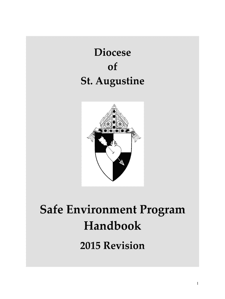 Diocese of St. Augustine Safe Environment Program Handbook 2015 Revision 1 Notes on this revision: 1. Changes from the last version are indicated by a vertical line in the left margin, and being underlined