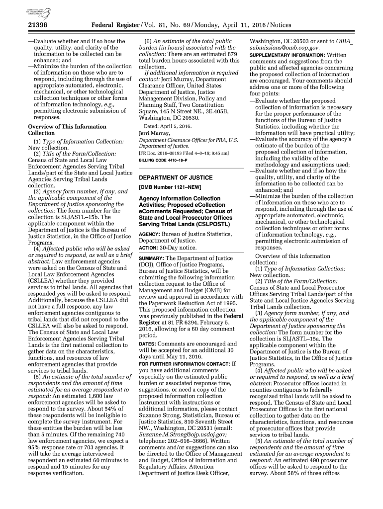 21396 Federal Register / Vol. 81, No. 69 / Monday, April 11, 2016 / Notices mstockstill on DSK4VPTVN1PROD with NOTICES Evaluate whether and if so how the quality, utility, and clarity of the information
