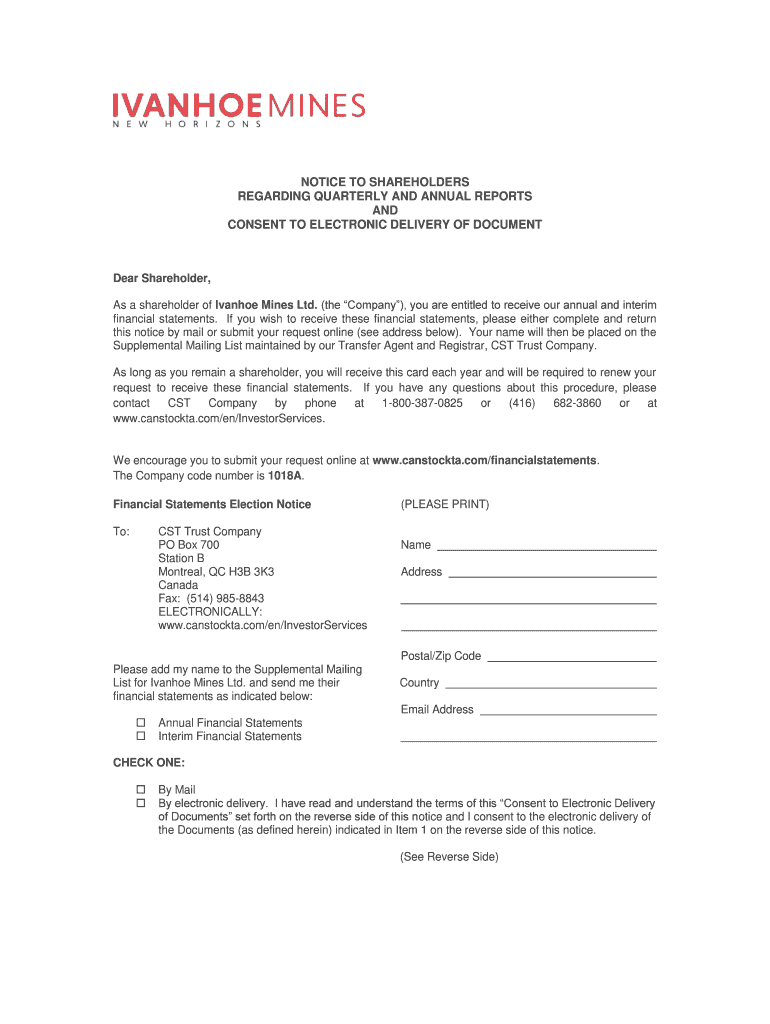 Get the free NOTICE TO REGISTERED SHAREHOLDERS - ivanhoeminescom