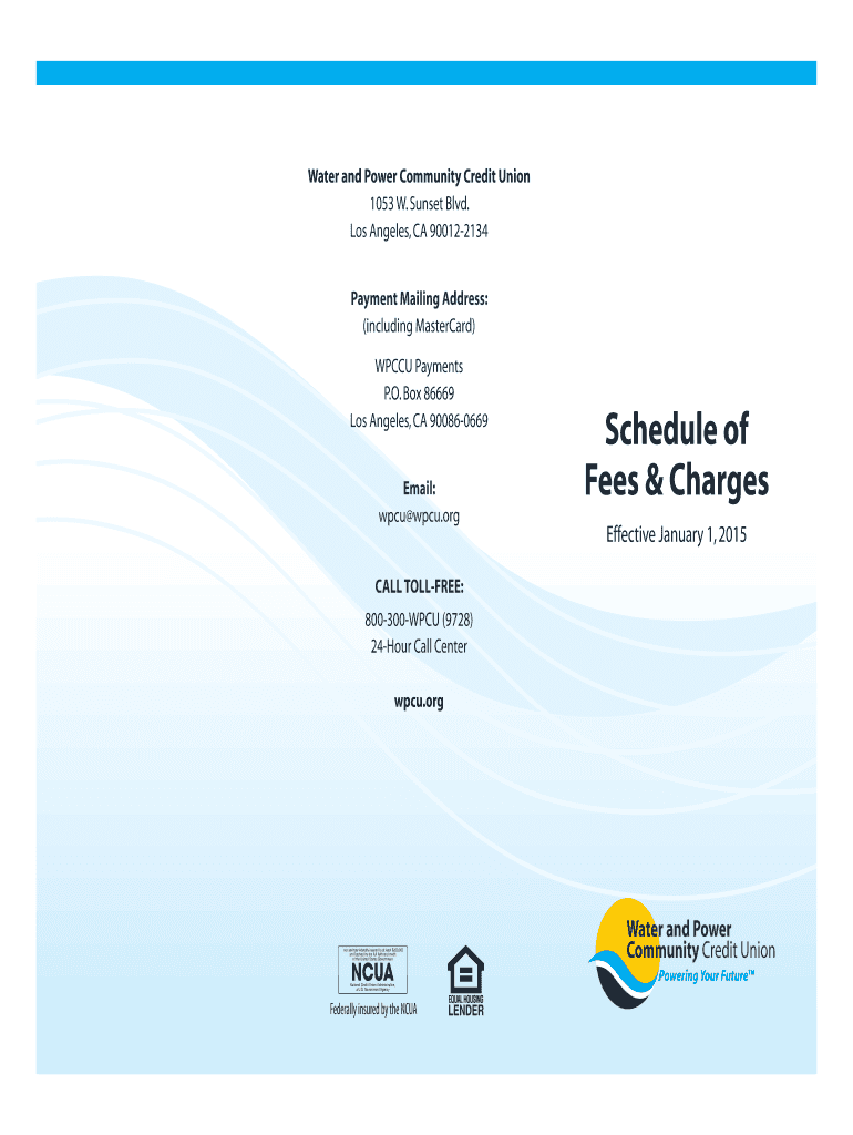 Water and Power Community Credit Union 1053 W. Sunset Blvd. Los Angeles, CA 900122134 Payment Mailing Address: (including MasterCard) WP CCU Payments P.O. Box 86669 Los Angeles, CA 900860669 Email: