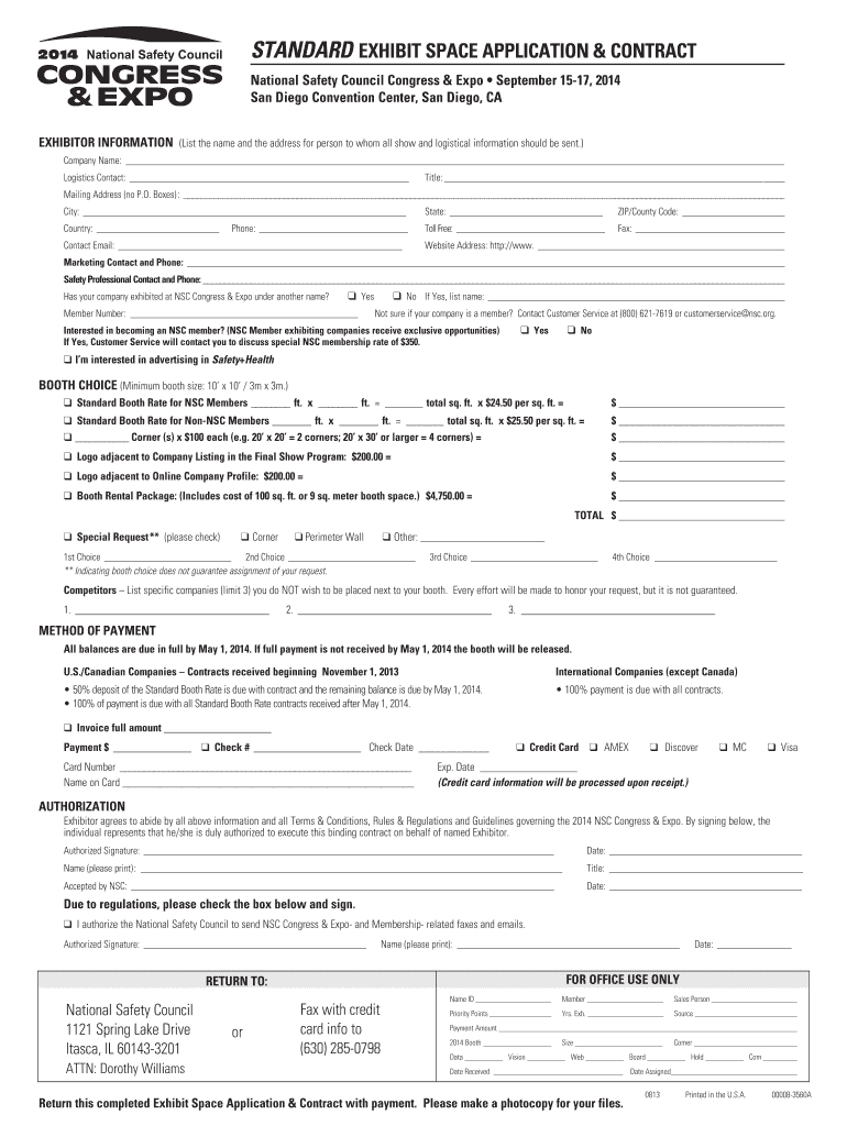 STANDARDEXHIBIT SPACE APPLICATION & CONTRACT National Safety Council Congress & Expo September 1517, 2014 San Diego Convention Center, San Diego, CA EXHIBITOR INFORMATION (List the name and the address