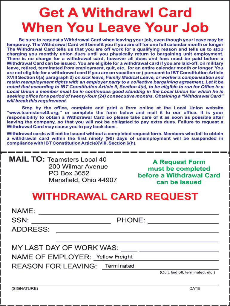 Be sure to request a Withdrawal Card when leaving your job, even though your leave may be