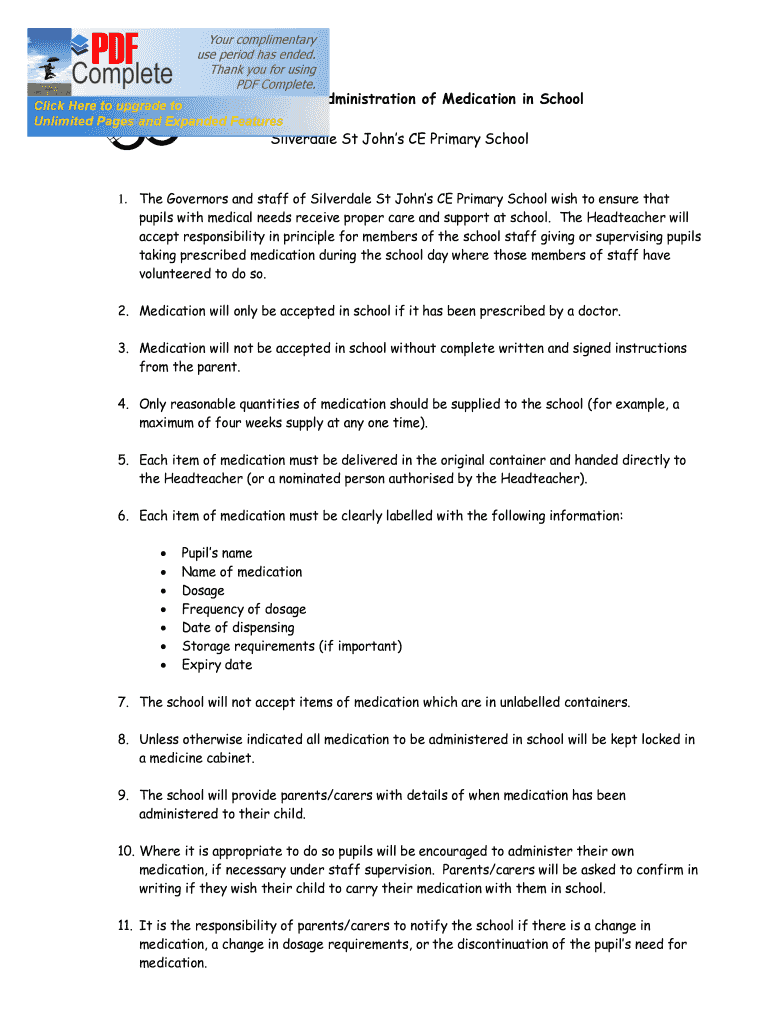 Get the free Administration of Medication in School.doc - silverdale lancsngfl ac