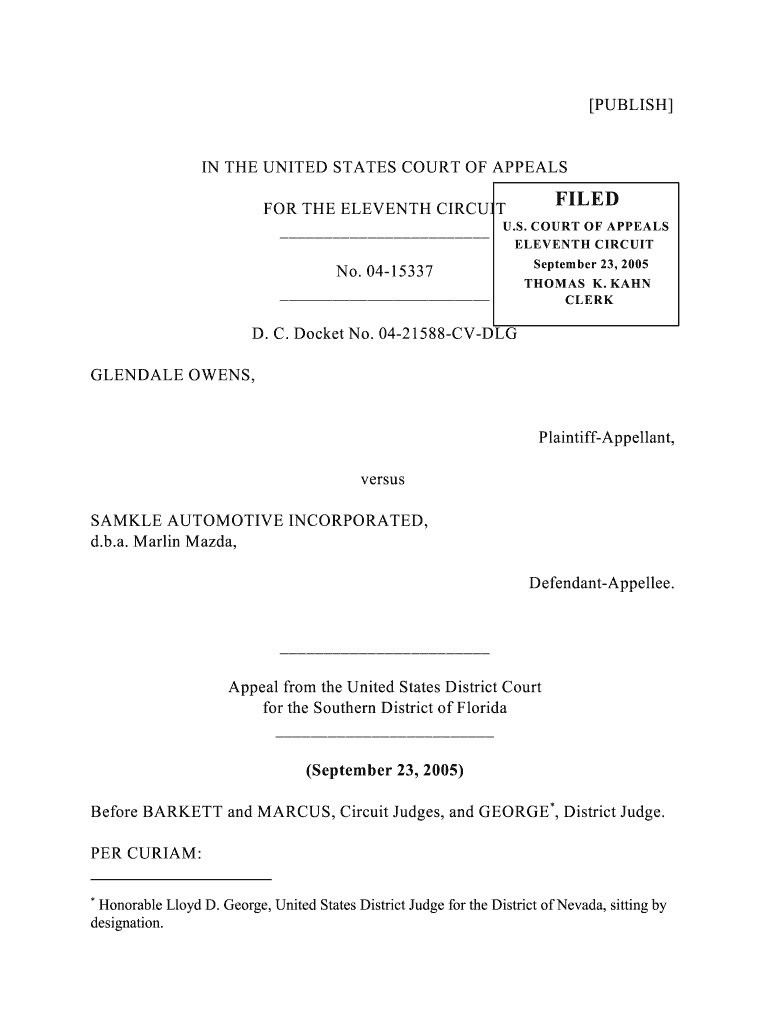 PUBLISH IN THE UNITED STATES COURT OF APPEALS FILED FOR THE ELEVENTH CIRCUIT U.S. COURT OF APPEALS ELEVENTH CIRCUIT No. 0415337 September 23, 2005, THOMAS K. HAHN CLERK D. C. Docket No. 0421588CVDLG