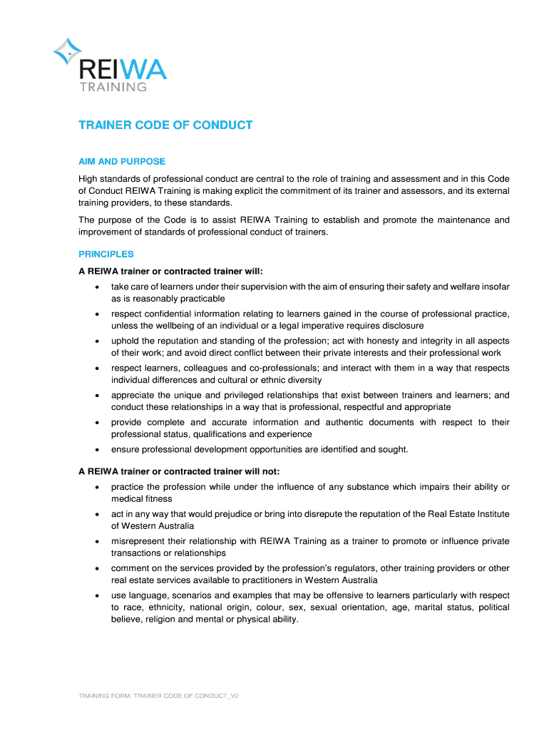 Trainer Code Of Conduct is not the form you're looking for?Search for another form here.