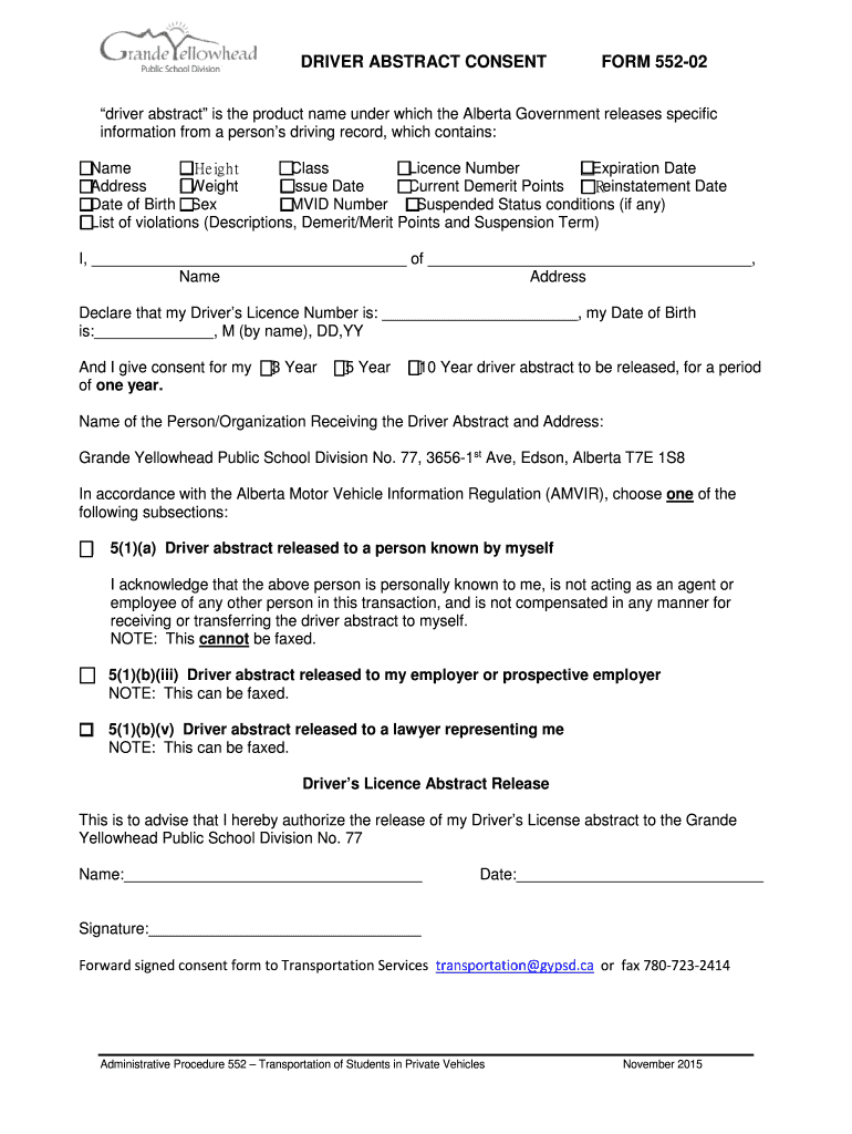 Get the free AP 552 Form 552-02 Driver Abstract Consent - docushare gypsd