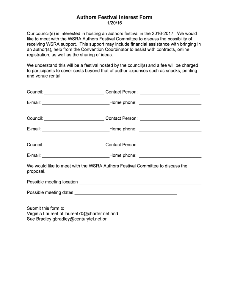 Get the free AF Interest Form - wsraorg