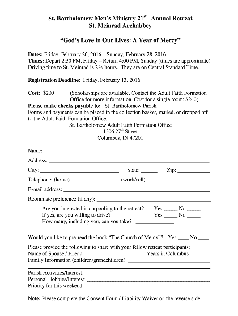 Get the free St Bartholomew Mens Ministry 21st Annual Retreat St - saintbartholomew