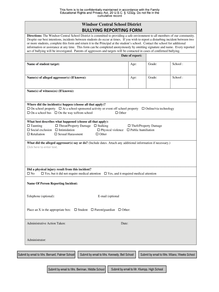 Get the free BULLYING REPORTING FORM - Windsor Central High School - windsor-csd
