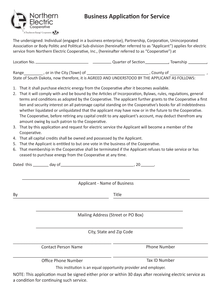 Business Application for Service The undersigned: Individual (engaged in a business enterprise), Partnership, Corporation, Unincorporated Association or Body Politic and Political Subdivision (hereinafter