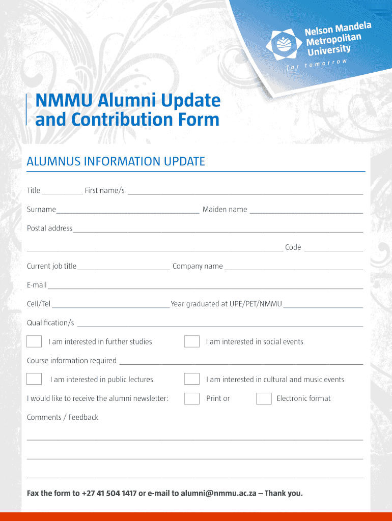 All alumni of Nelson Mandela Metropolitan University (NMMU) are required to file the alumni update to keep their information current.