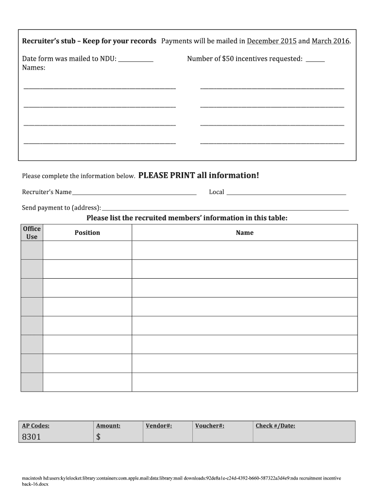 Fill out your ndu recruitment incentive front-16docx online with pdfFiller!