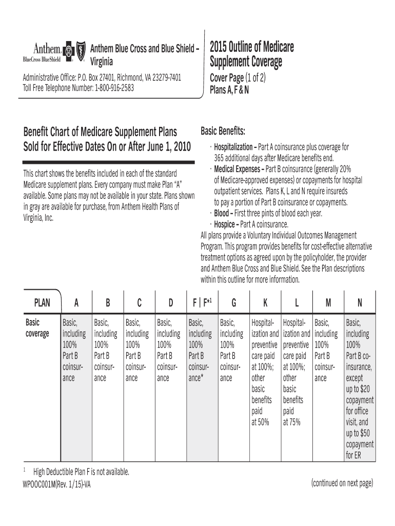 Get the free Anthem Blue Cross Blue Shield - Virginia 2015 Outline of Medicare Supplement Coverag...