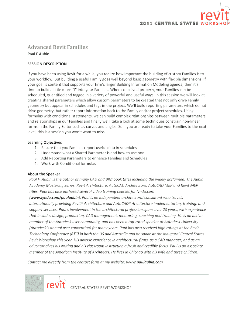 Advanced Revit Families is not the form you're looking for?Search for another form here.