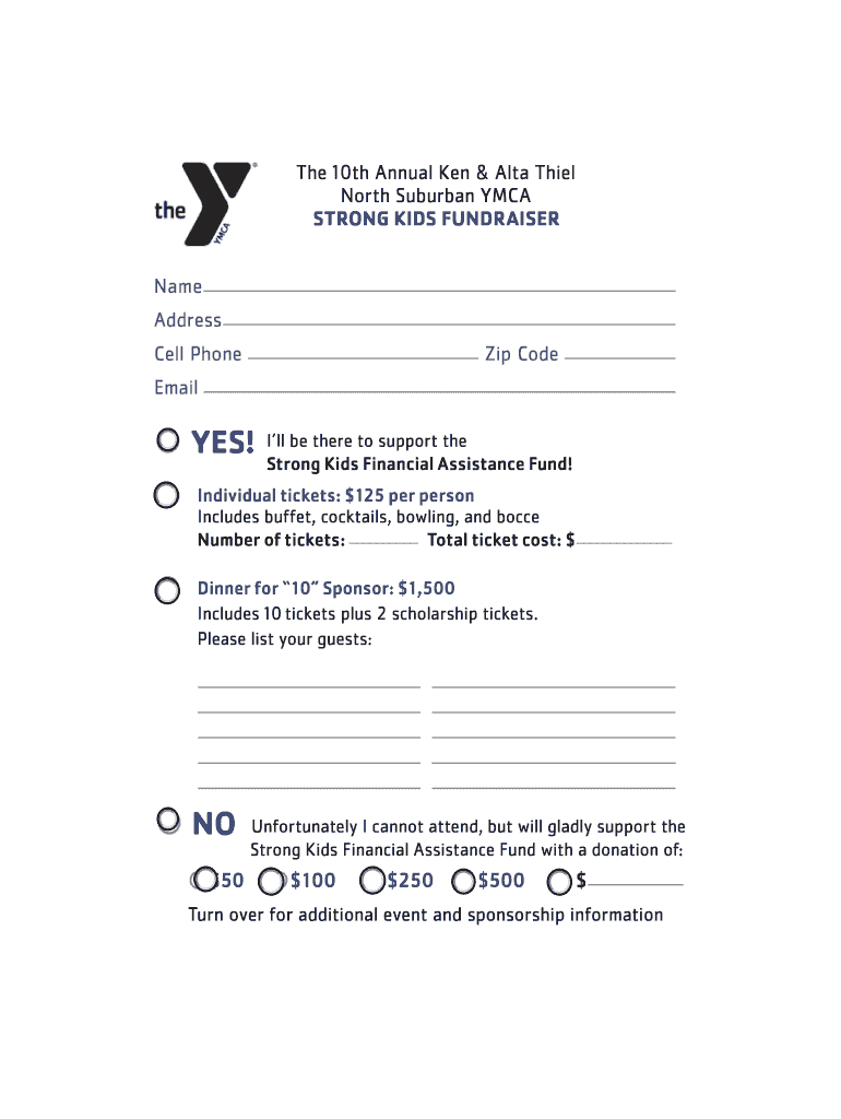 The 10th Annual Ken & Alta Thiel North Suburban YMCA STRONG KIDS FUNDRAISER Name Address