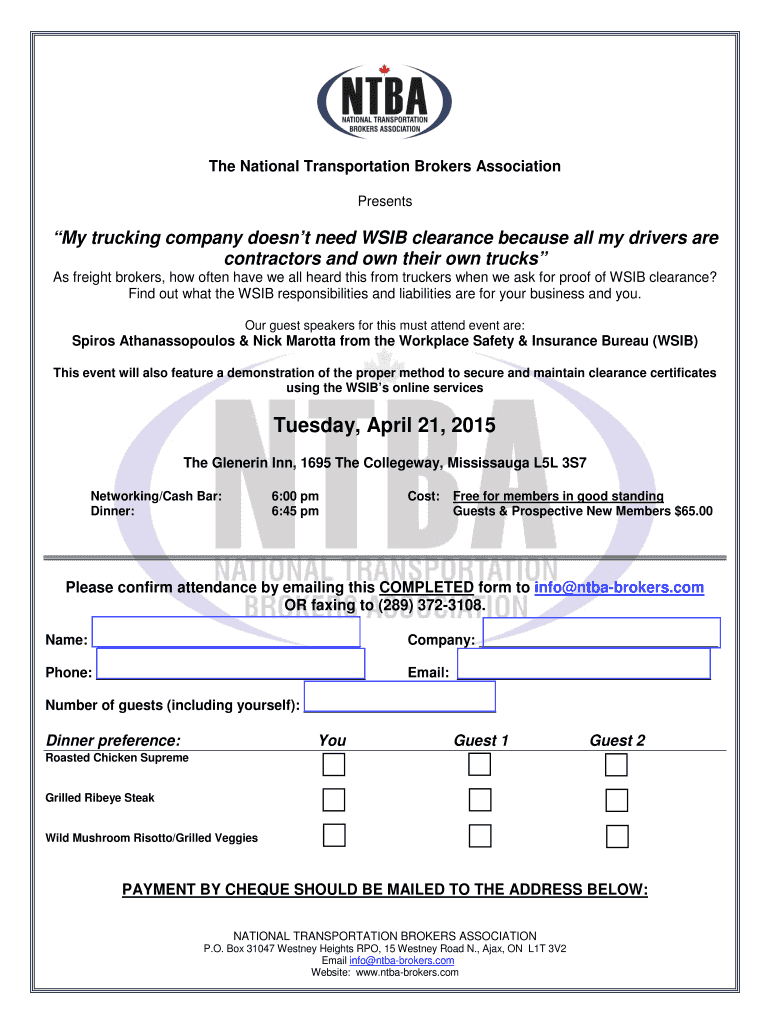 Get the free Wsib dinner april 21 2015 flyerpdf