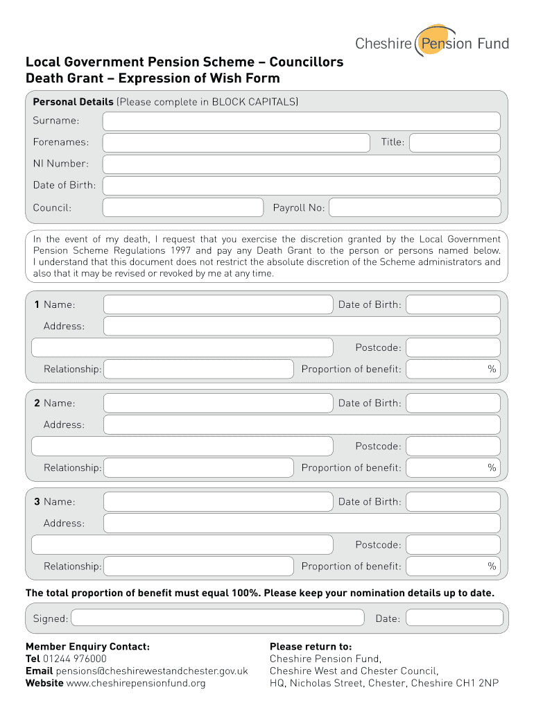 Get the free Local Government Pension Scheme Councillors Death Grant - cheshirepensionfund