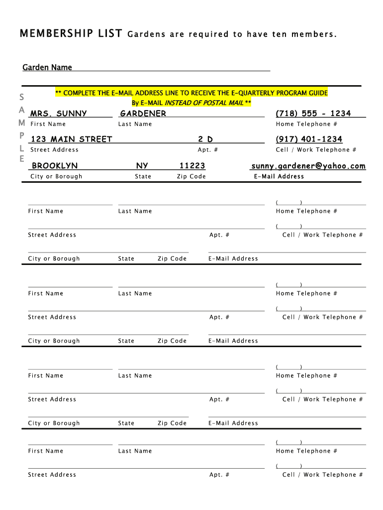 How to fill out membership list - nyc