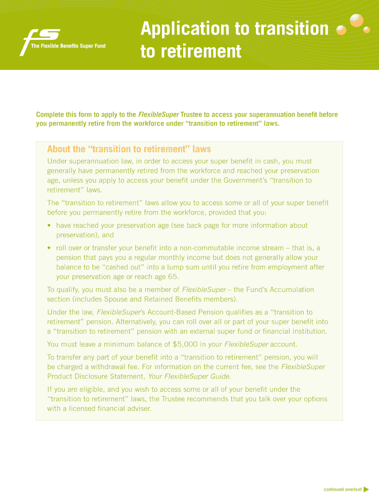 Get the free Transition to Retirement Application Form