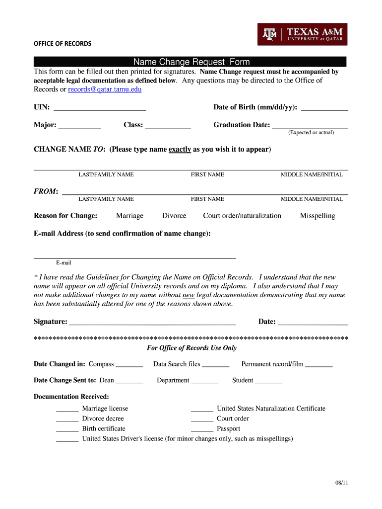 Get the free Name Change Request Form This form can be filled out then - cdn qatar tamu