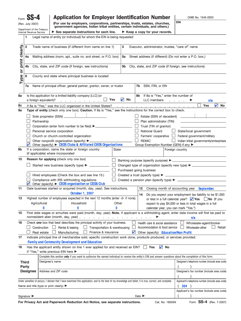 Retail. If Yes, write previous EIN here n/a. CEO Clubs & Affiliated CEOs Organizations. CEOs organization or CEOs Club. October 1, 2007. September. 0.