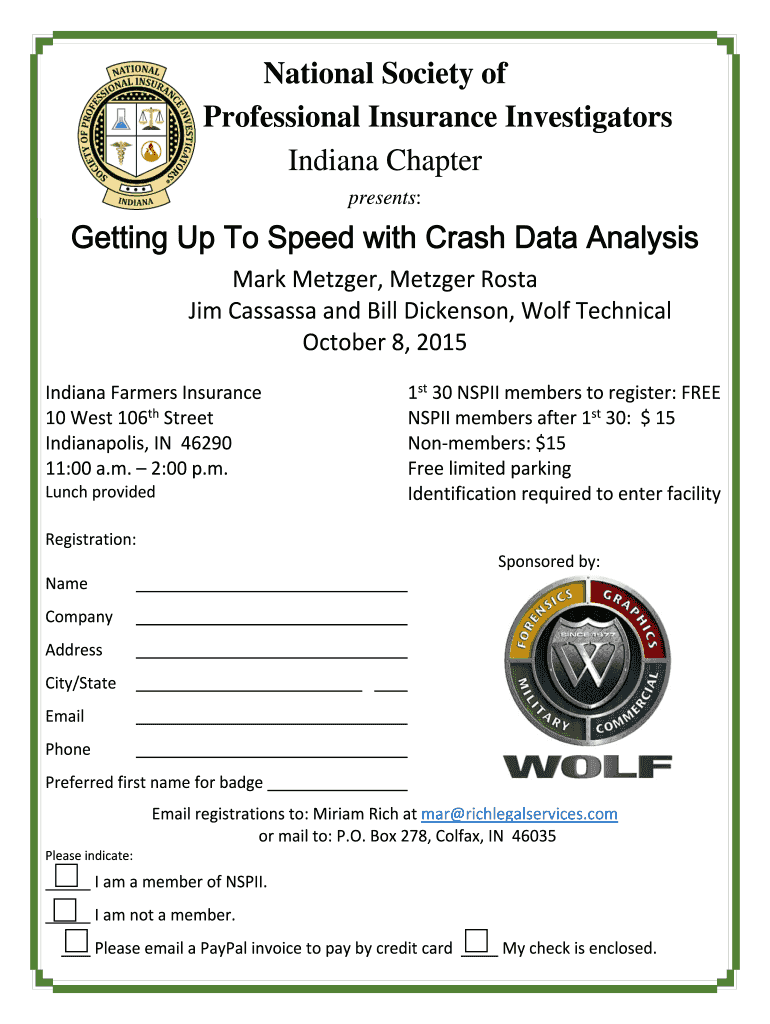 National Society of Professional Insurance Investigators Indiana Chapter presents: Getting Up To Speed with Crash Data Analysis Marketer, MetzgerRosta JimCassassaandBillDickenson, Nontechnical October8,2015