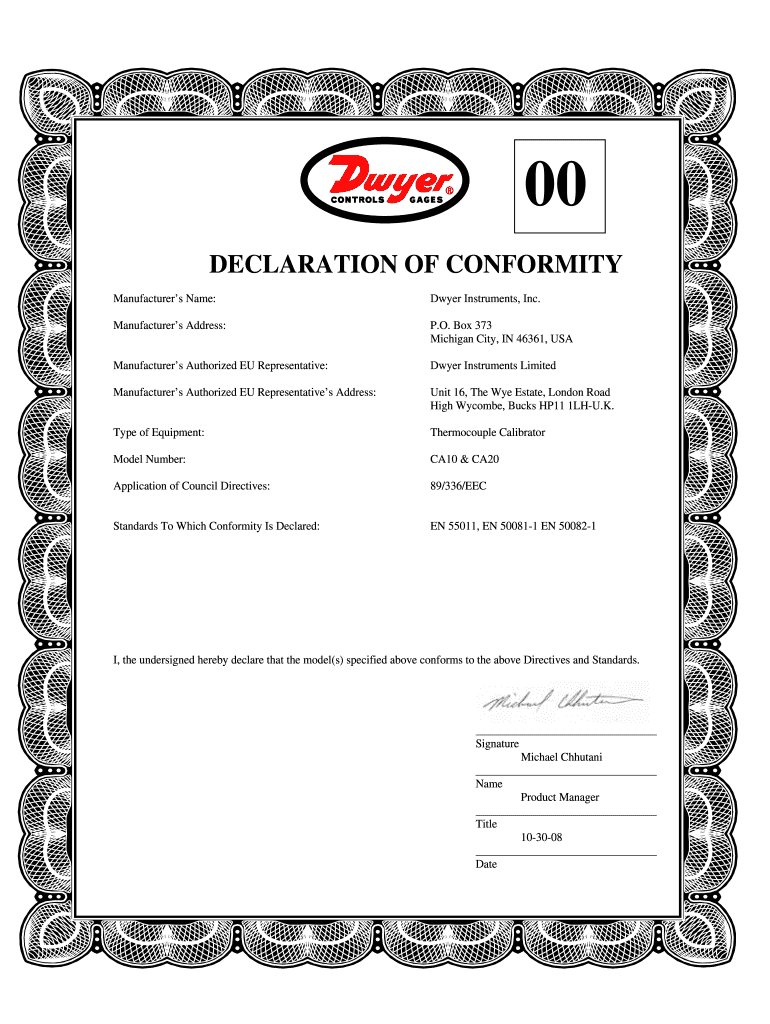 The form must be signed by a Product Manager or an authorized representative of the manufacturer, indicating their approval of the product's compliance status.