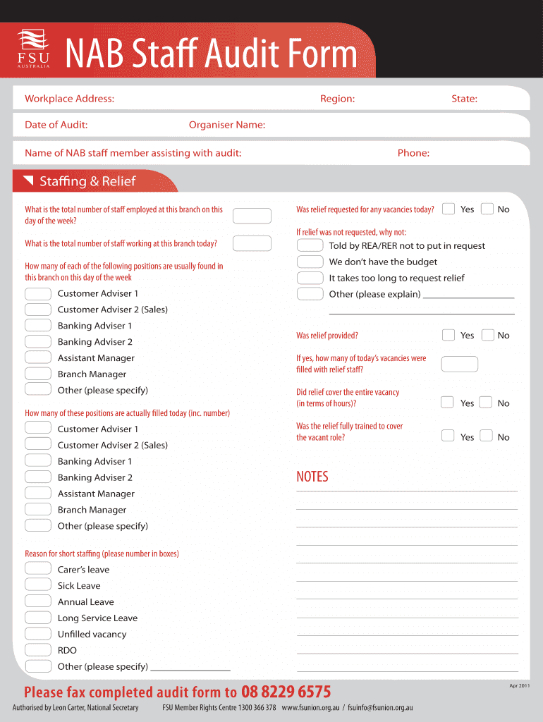 Get the free NAB Staffing Audit form - Finance Sector Union