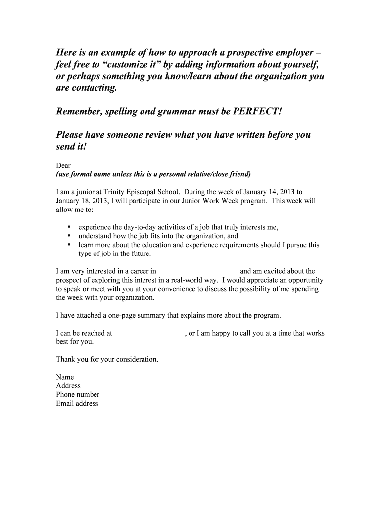Here is an example of how to approach a prospective employer feel free to customize it by adding information about yourself, or perhaps something you know/learn about the organization you are contacting.