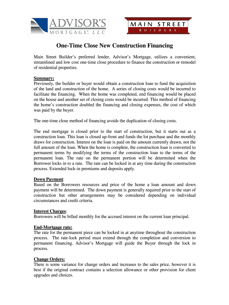 Fill out your one-time close new construction online with pdfFiller!