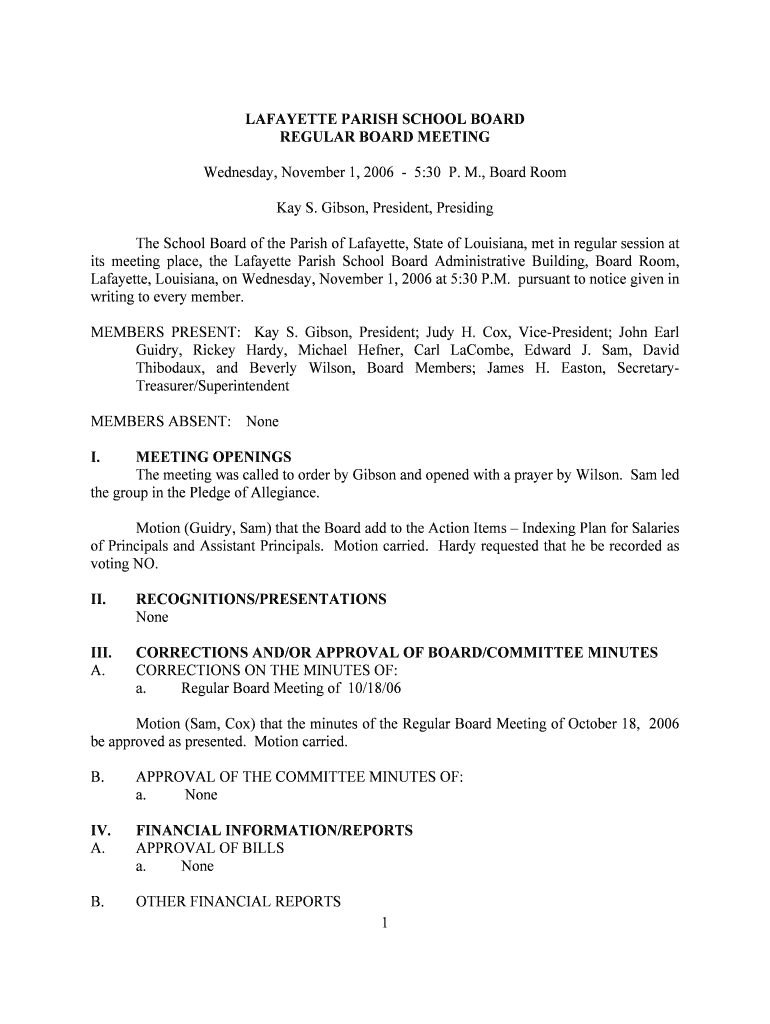 Get the free LAFAYETTE PARISH SCHOOL BOARD REGULAR BOARD MEETING