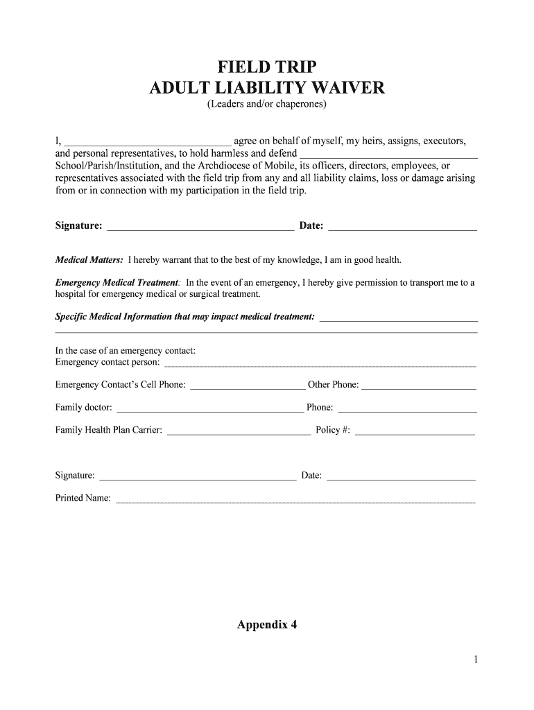 Edit your field trip adult liability form online