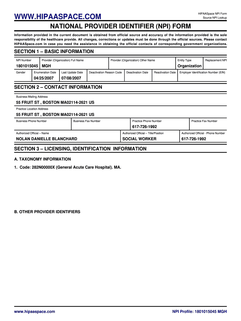 Get the free HIPAASpace NPI Form