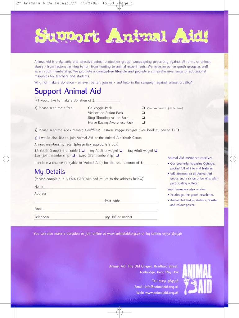 CT Animals & Us latest V7 15/2/06 15:33-Page 1 S p up ORT An d! I'm l i Animal Aid is a dynamic and effective animal protection group, campaigning peacefully against all forms of animal abuse from