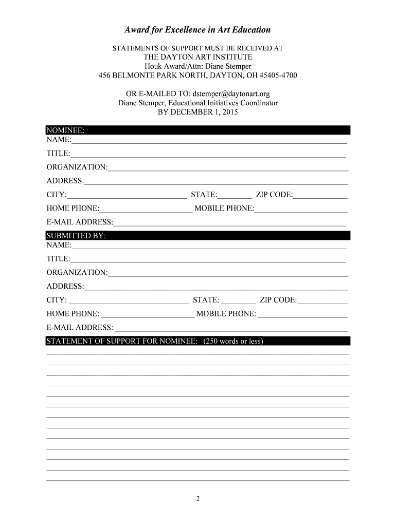 Get the free NOMINATION FORM Pamela P Houk Award for Excellence in Art - daytonartinstitute