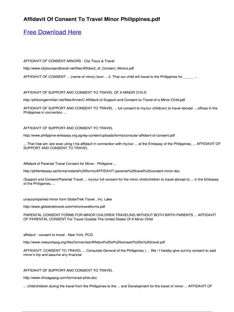 Affidavit Of Consent To Travel Minor Philippines.pdf Free Download Here AFFIDAVIT OF CONSENTMINORS City Tours & Travel http://www.citytoursandtravel.net/files/Affidavit of Consent Minors.pdf AFFIDAVIT