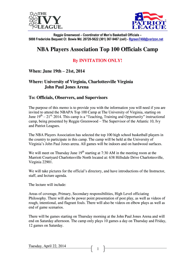 Get the free NBA Players Association Invitational Officials Camp