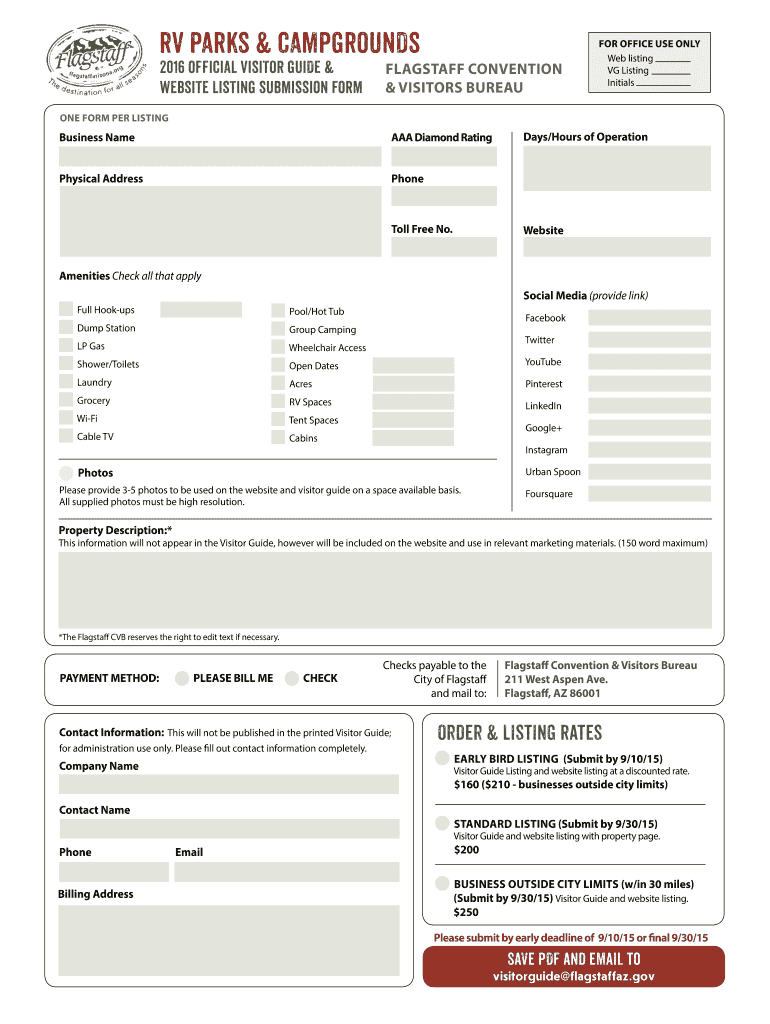 2016 Official Flagstaff Visitor Guide The Official Flagstaff Visitor Guide is the Flagstaff Convention and Visitors Bureaus main collateral piece distributed through statewide and regional visitor
