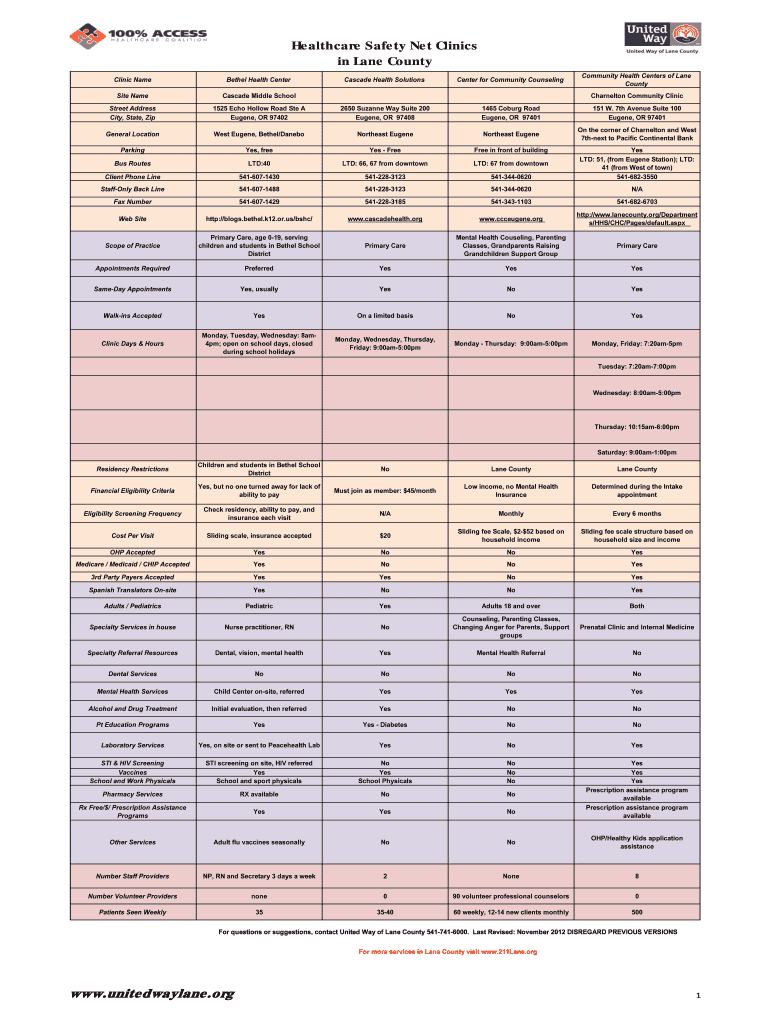 Get the free Healthcare Safety Net Clinics in Lane County