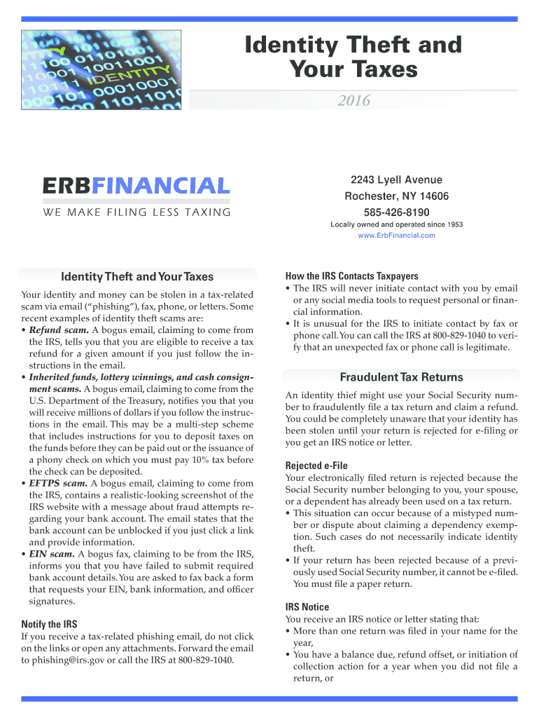 www.ErbFinancial.comIdentity Theft and Your Taxes