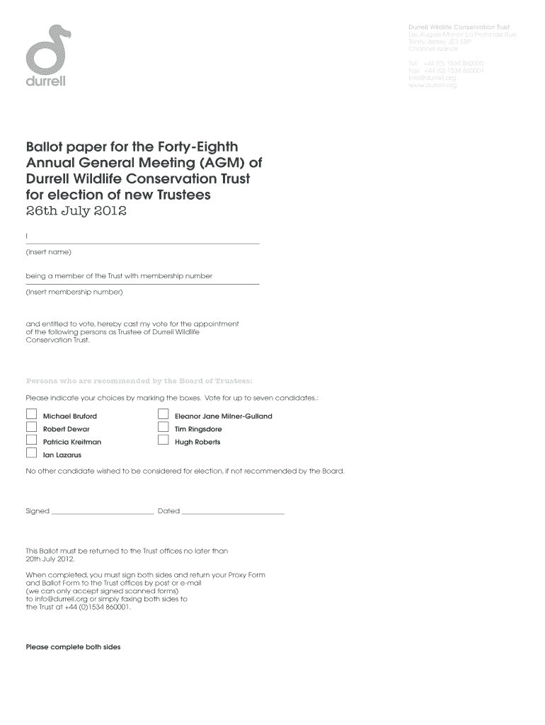 Get the free Ballot paper for the Forty-Eighth Annual General Meeting - durrell