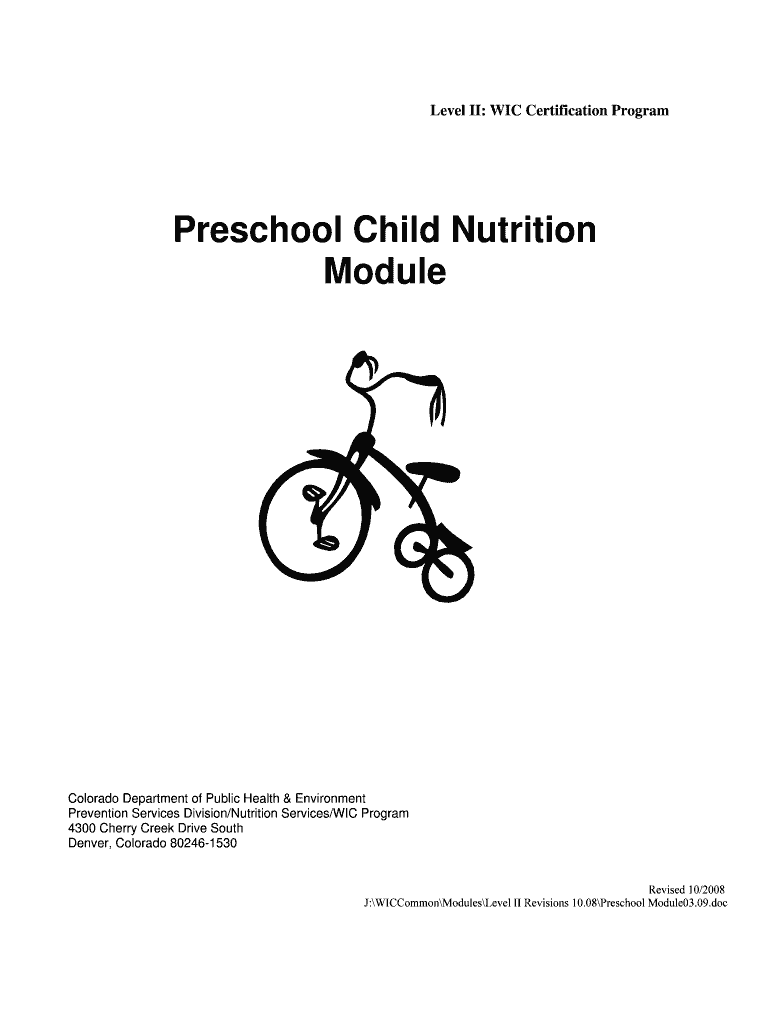 Level II: WIC Certification Program Preschool Child Nutrition Module Colorado Department of Public Health & Environment Prevention Services Division/Nutrition Services/WIC Program 4300 Cherry Creek