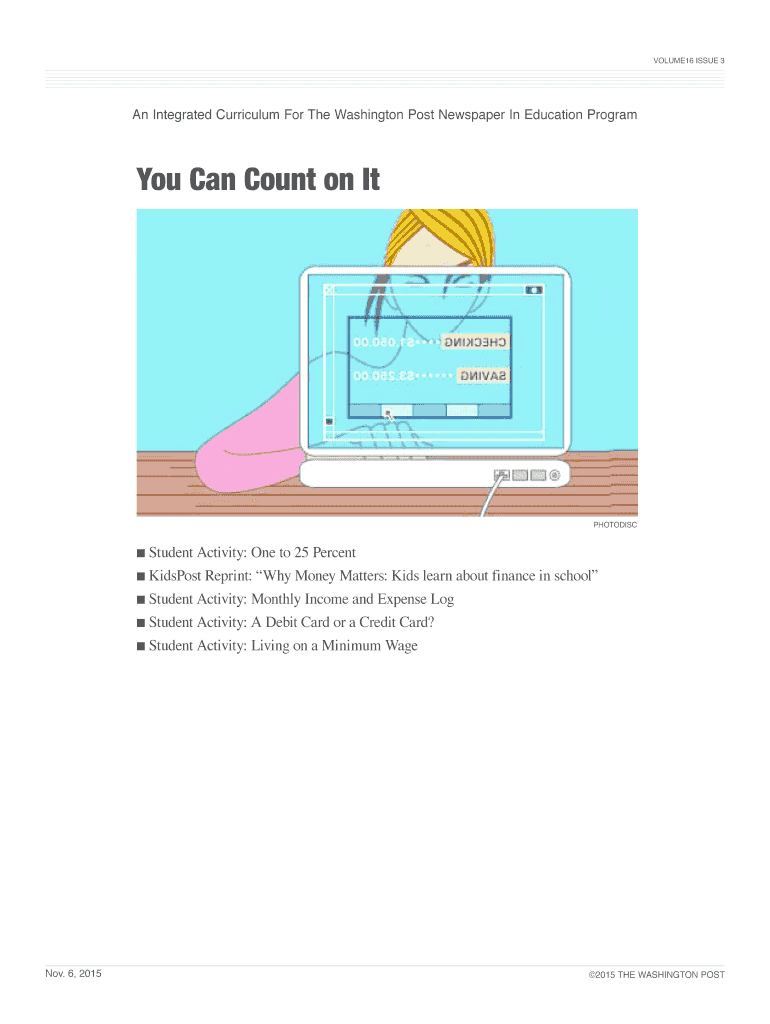 Volume16 Issue 3 An Integrated Curriculum For The Washington Post Newspaper In Education Program You Can Count on It PHOTONIC Student Activity: One to 25 Percent Kids Post Reprint: Why Money Matters: