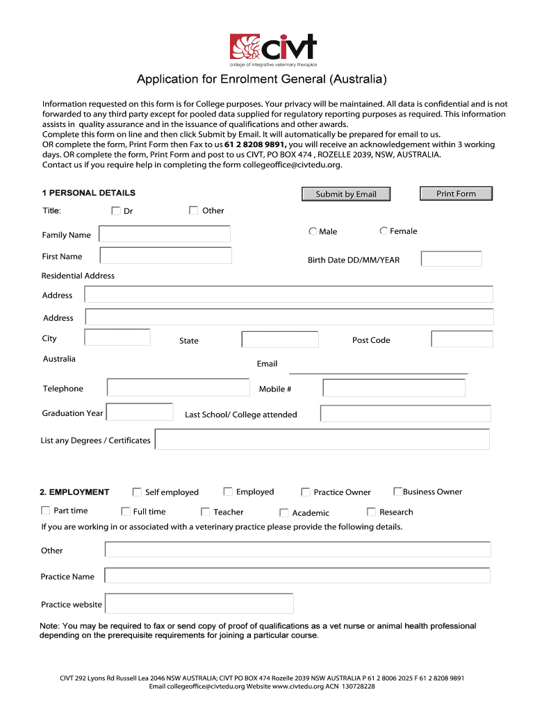 Application for Enrollment General (Australia)