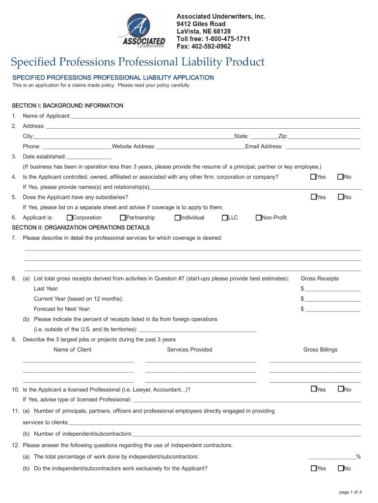The Professional Liability Application consists of several sections, each requiring careful attention. Here are specific field-by-field instructions: