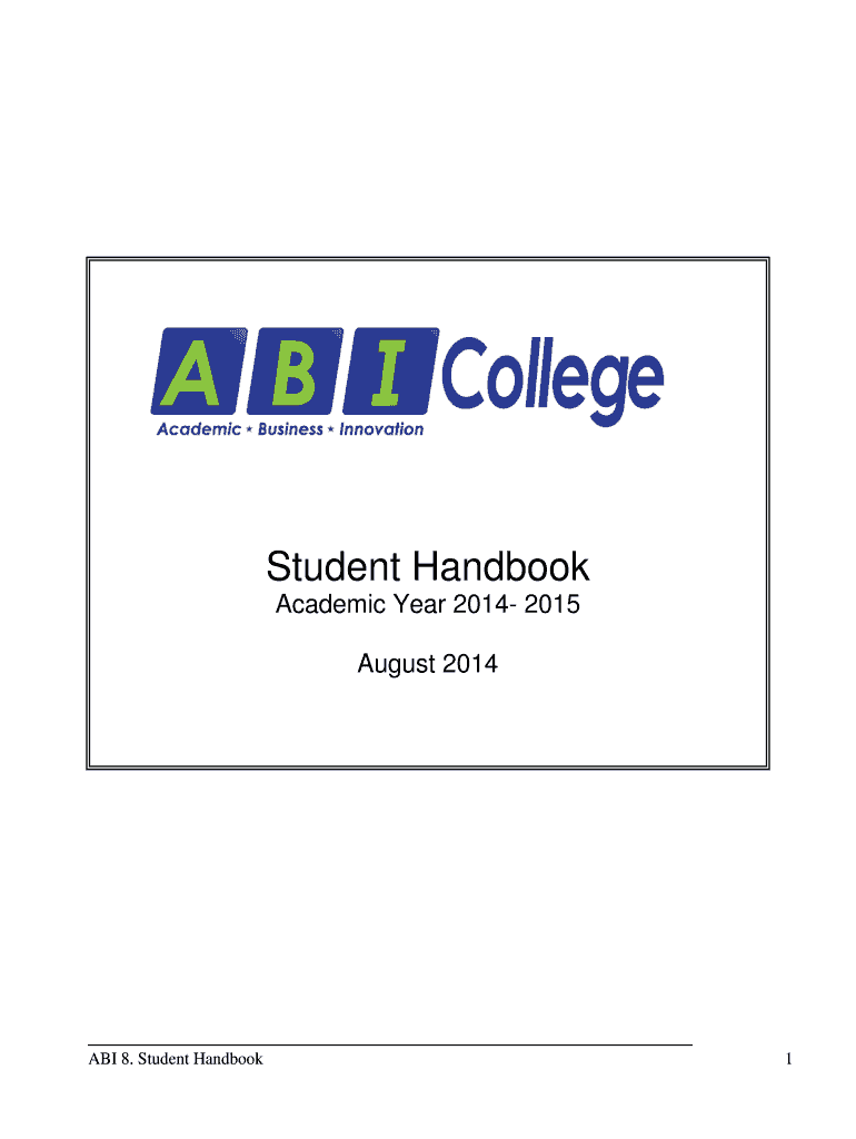Student Handbook Academic Year 2014 2015 August 2014 ABI 8. Student Handbook 1 CONTROL PAGE Document Title Student Handbook 20142015 Document Reference ABI 8 Version Author 2.0 Nick Goddard/Lesley
