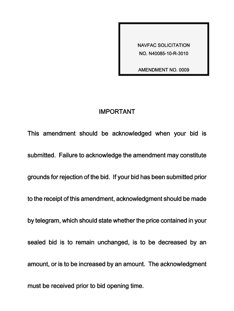 Get the free NAVFAC SOLICITATION NO. N40085-10-R-3010 AMENDMENT NO. 0009