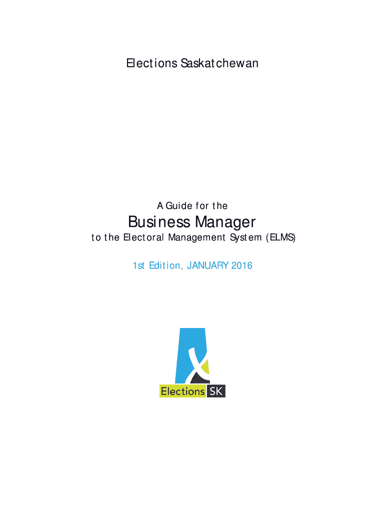 Elections Saskatchewan A Guide for the Business Manager to the Electoral Management System (ELMS) 1st Edition, JANUARY 2016 Office of the Chief Electoral Officer (Elections Saskatchewan) 301 3303