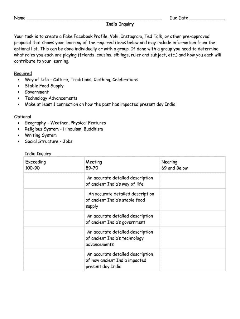 Name Due Date India Inquiry Your task is to create a Fake Facebook Profile, Loki, Instagram, Ted Talk ...