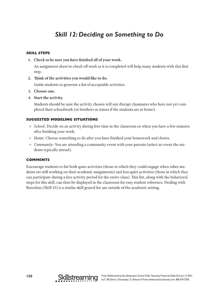 Back to Menu Print Note: Homework Reports follow-on pages 2 and 3 of this file. Skill 12: Deciding on Something to Do SKILL STEPS 1. Check to be sure you have finished all of your work. An assignment